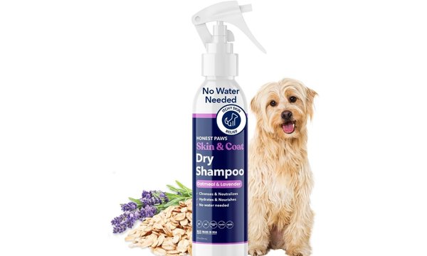 • WATERLESS DOG SHAMPOO – This dry dog shampoo has naturally derived apple and honey to freshen your dog’s coat without fully bathing – a must-have in your dog bathing supplies